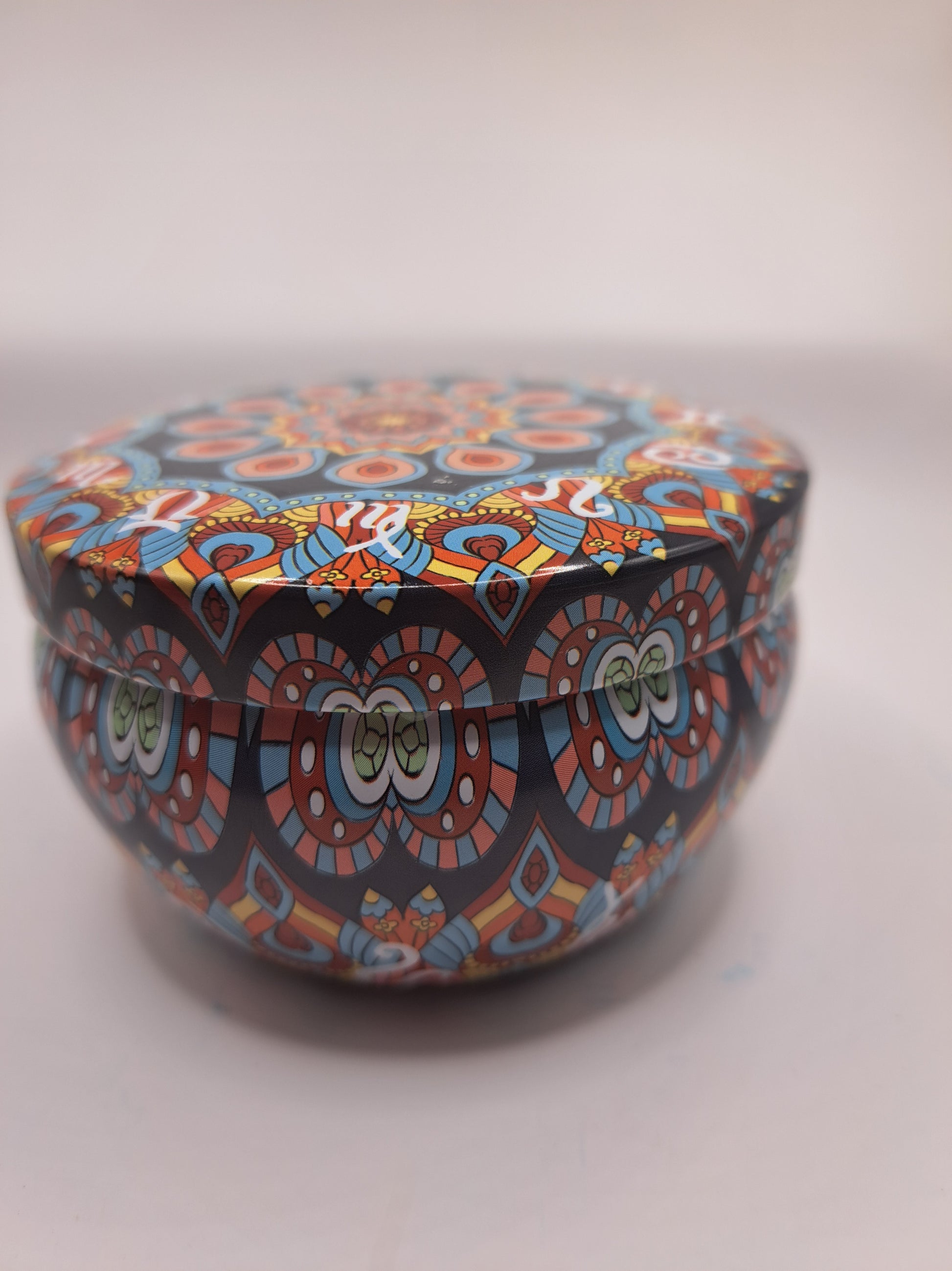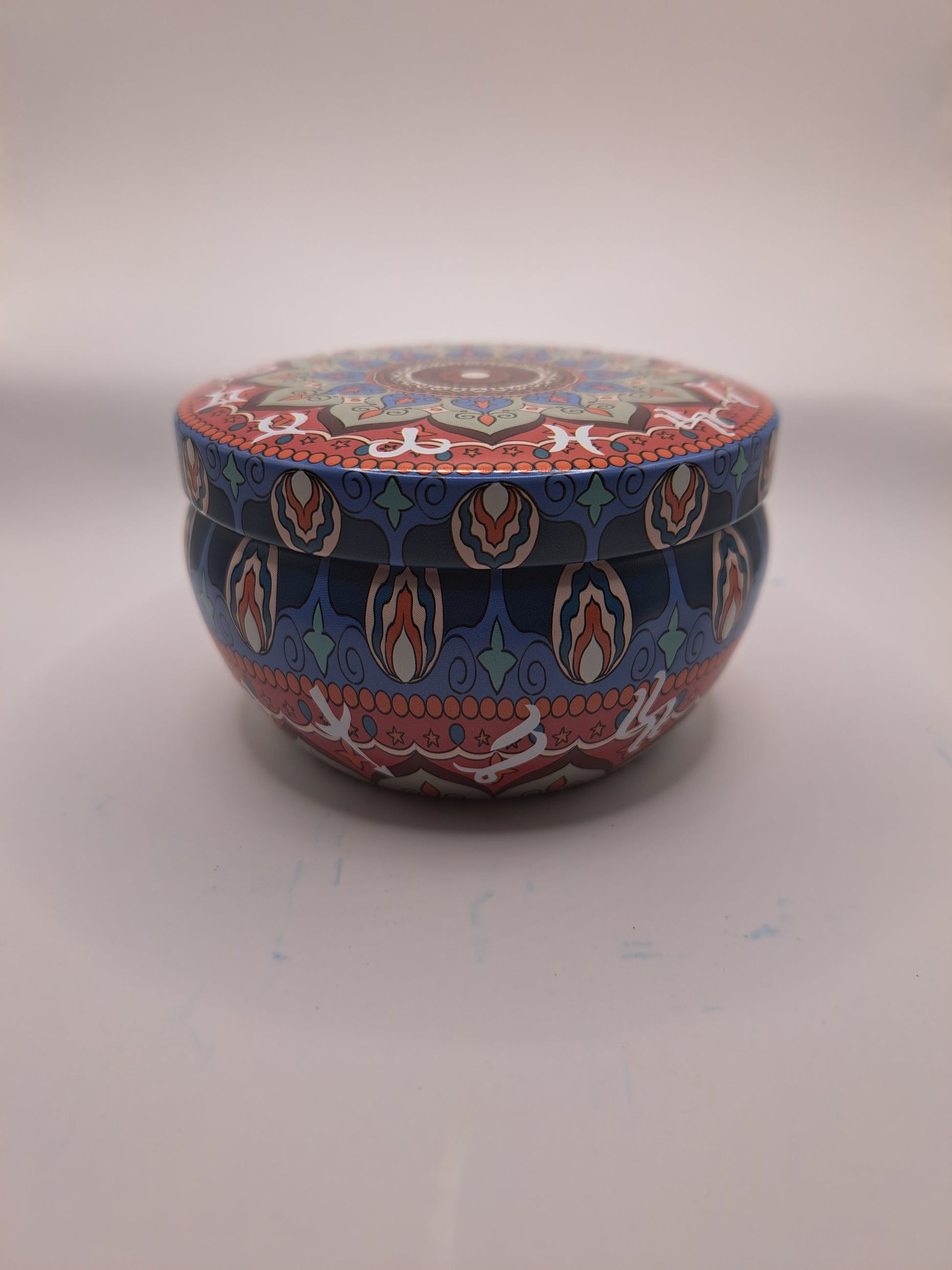 Savage is a Moss Green candle with a high-end fragrance oil. This FO has a strong masculine smell. It reminds me of a high-end men's cologne. Each tin is a different color and a different design. This candle is made with paraffin wax with a little bit of soy wax. Weight 7.5 oz.