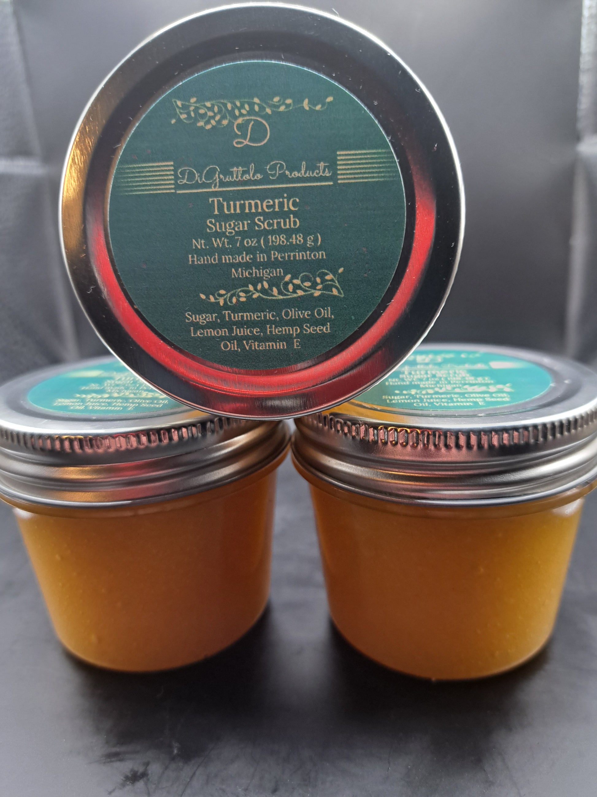 The main ingredient, turmeric, is known for its anti-inflammatory and antioxidant properties, making it a great addition to any skincare routine. Combined with the exfoliating power of sugar and the nourishing benefits of olive oil, lemon juice, hemp seed oil, and vitamin E, this scrub will leave your skin feeling soft, hydrated, and glowing.